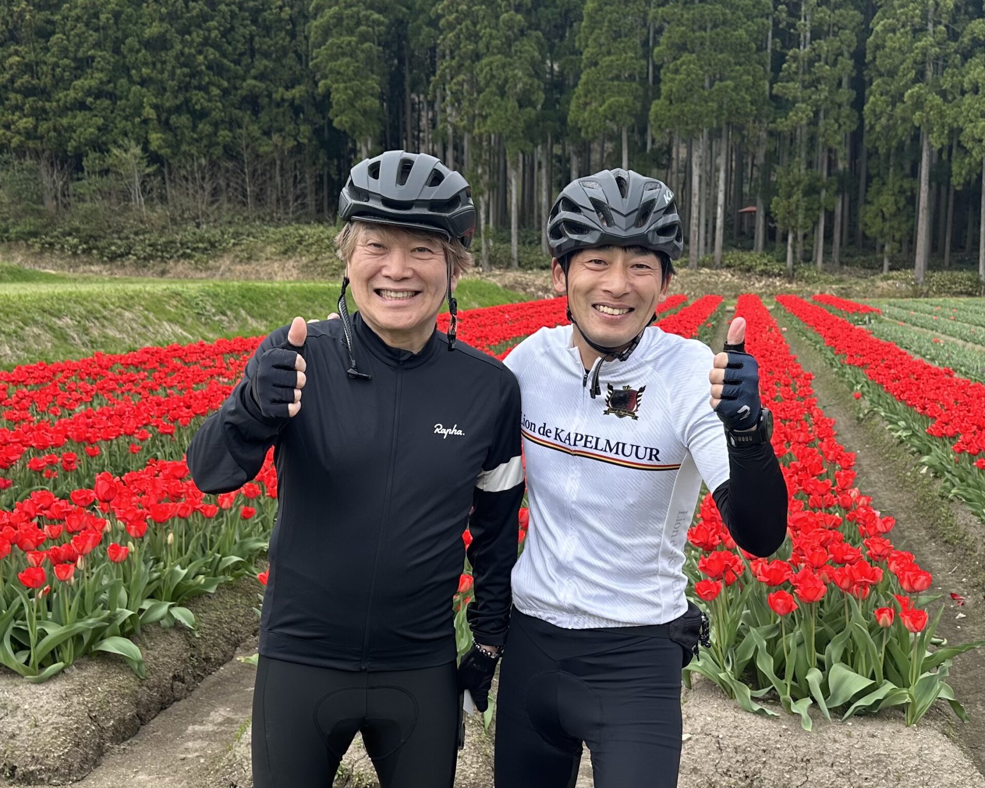 そして翌日は・・・ありがたい事に、また今年も声を掛けていただいて一緒にゆるゆるサイクリングへ🚴今回は、影山さん、桑垣さん、友人の佐藤くんの4人で但東町ライドへGO! 【日本モンゴル博物館・志水柿の湧水・但東町のチューリップ・そばの郷・桑垣さんのお家・シルク温泉やまびこ】などなど景色に食に盛りだくさん。やっぱり自転車はいいですね~楽しいです!最後はみんなでシルク温泉で疲れを癒してお肌もツルスベに(^^)v 影山さんは、一緒にいるとこちらが元気になれる太陽みたいな方!またぜひ福知山へお越しくださいね。巡り巡ってご縁がつながっていく事にただただ感謝です。みなさん、貴重なお時間を作っていただいて本当にありがとうございました。またご一緒できる日を楽しみにしております😊